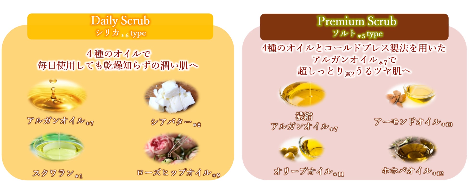 タイプごとに異なる植物由来のオイルを配合し、全⾝をうるおいに満ちた肌へ導きます。