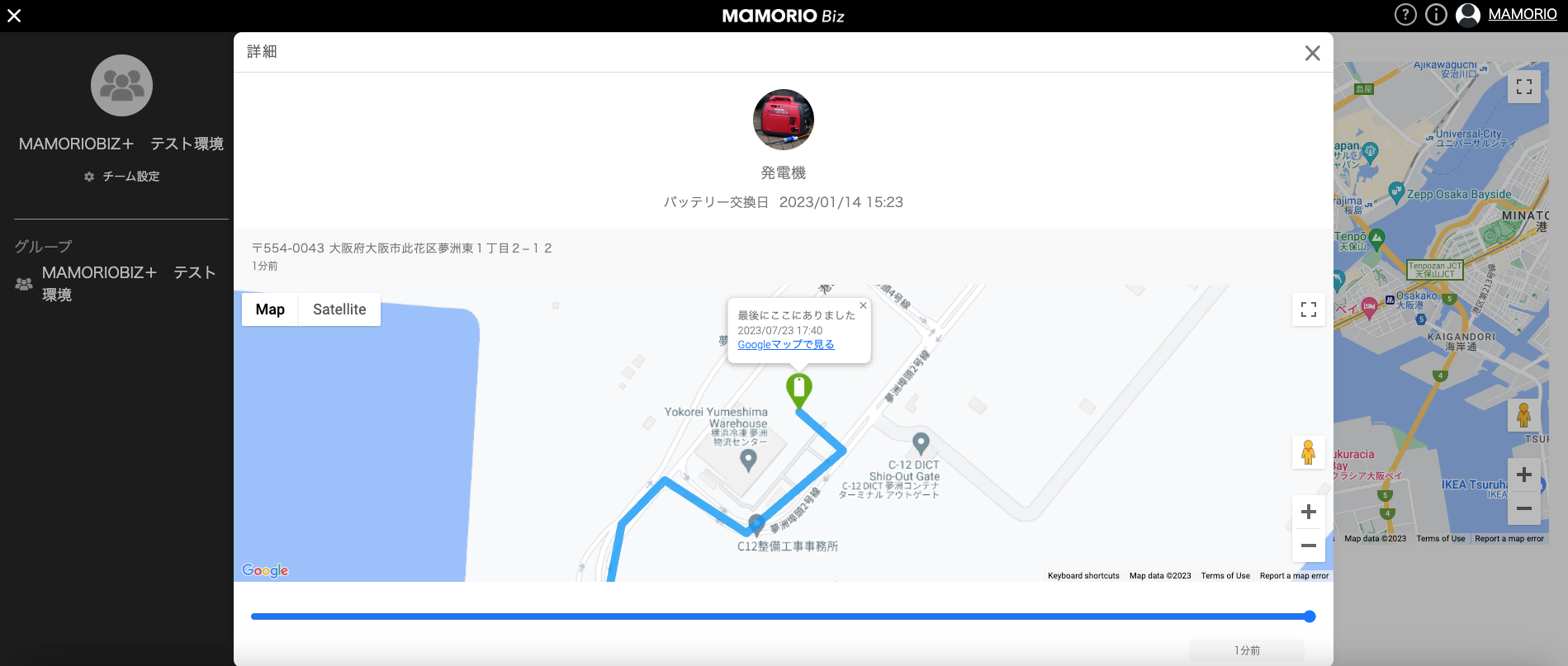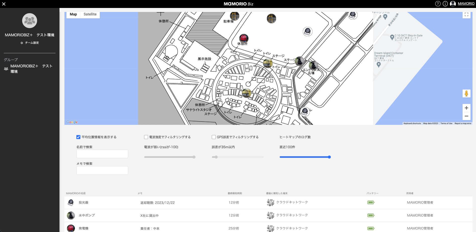 また万が一機材や物品が現場から紛失・盗難された際にはMAMORIOのネットワークを通じて位置情報のトラッキングが可能です。