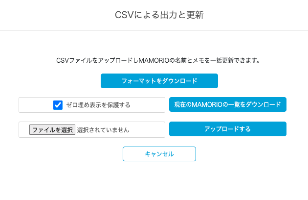 CSV一括登録機能は物品の登録データをCSVを使って一括インポートができる機能です。大量の機材や物品の情報をCSV形式で一括登録できるため、既存のシステムからのデータの登録などが簡単にできるようになります。