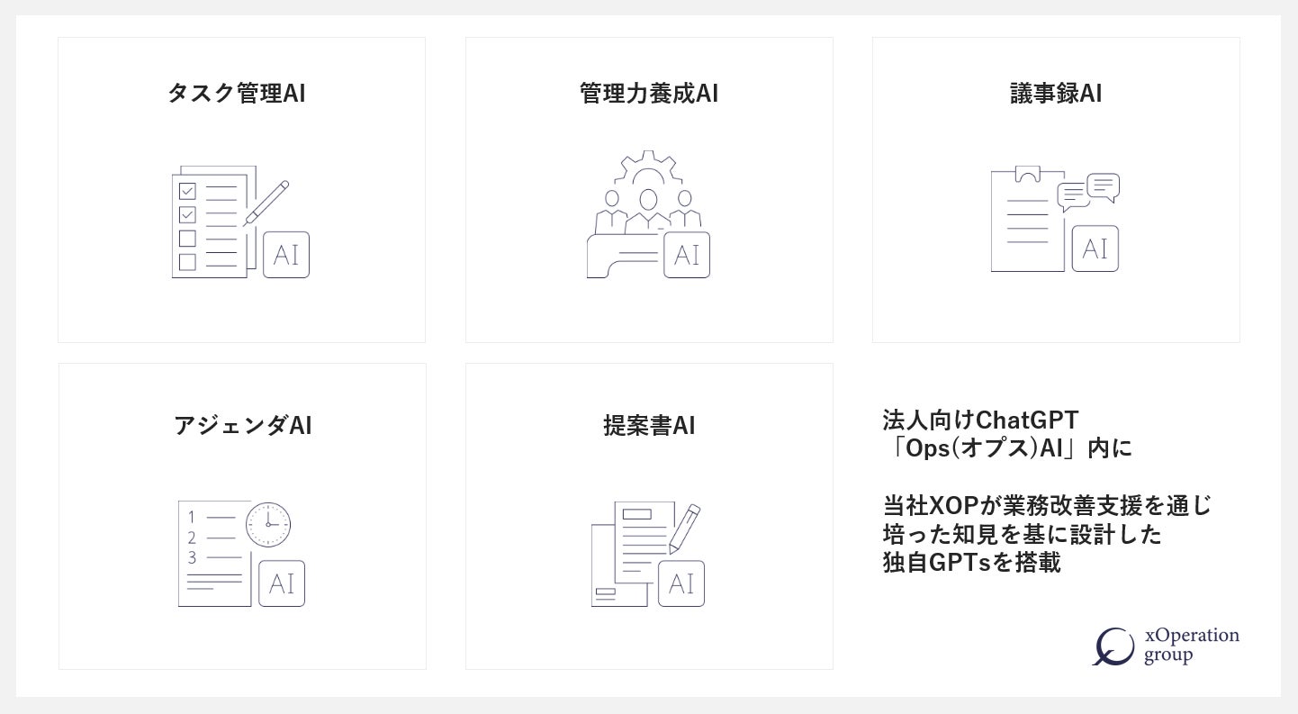 XOP、タスク管理AI・管理力養成AI・議事録AI・アジェンダAI・提案書AIをリリース。法人向けChatGPT「OpsAI」内に搭載。