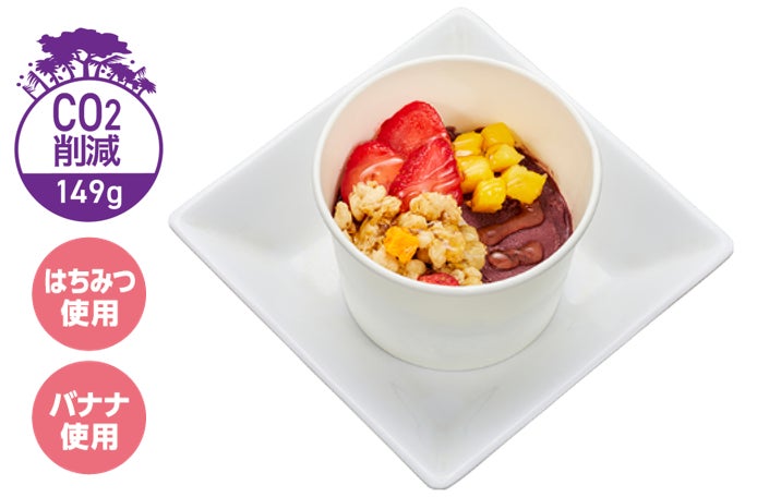 この度の販売は、当社が制定した9月16日の「アサイーの日」を記念して行われ、同じく9月11日(木)からはじまる期間限定の「サステナスイーツ・ミニアサイーボウル」のアサイーアイスが2倍になった特別仕様となります。濃厚でなめらかなアサイーボウルをたっぷりと味わえる贅沢な一杯です。また期間中は、アサイーの日特製ピックが添えられます。味わいだけでなく、見た目でも楽しめる特別メニューです。