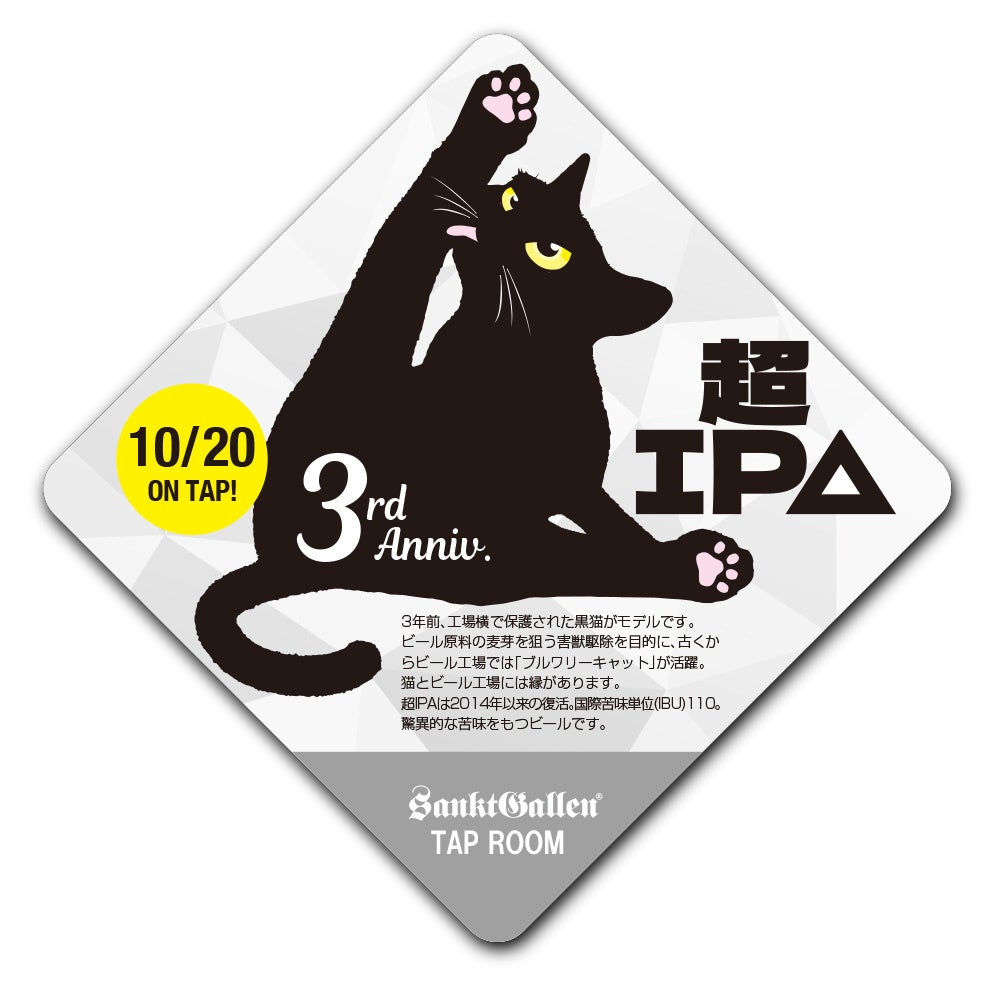 サンクトガーレン タップルーム3周年記念ビール「超IPA」を2024年10月20日発売 <3周年感謝祭で、50人に1人ご飲食代が無料になる抽選会を実施中>