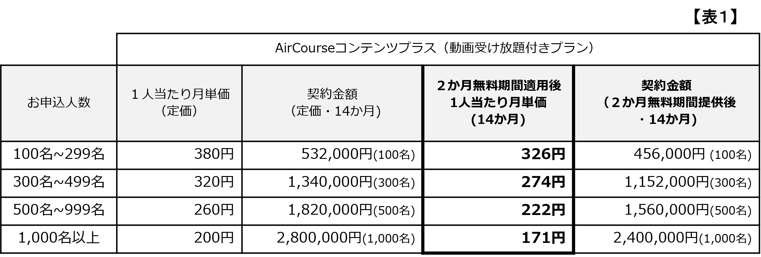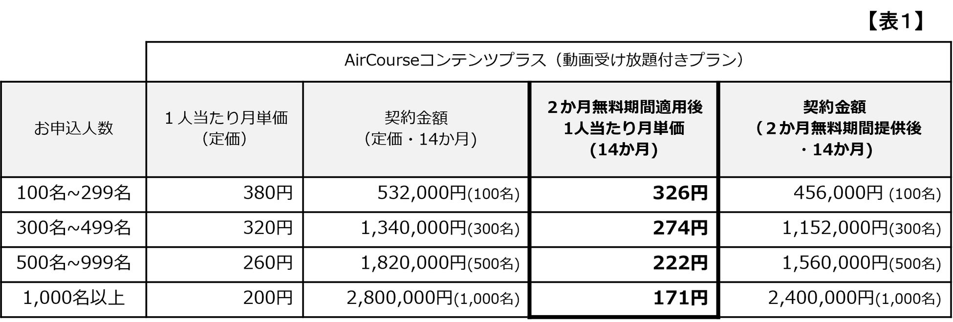 適用条件:期間中にAirCourse”100ライセンス以上”かつ”年間契約一括払い”にてお申込みいただいた法人企業