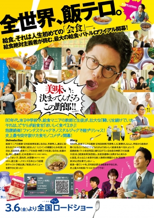 『劇場版 おいしい給食 Final Battle』は、テレビ神奈川、TOKYO MXなどで昨年放送された同名ドラマの劇場版。80年代のとある中学校を舞台に給食のことしか頭にない“給食絶対主義者”の男性教師と“給食マニア”の男子生徒の給食にまつわるバトルを描いた学園グルメコメディ。給食あるあるなど給食ネタで全10話を見事に紡ぎ上げ、SNSでも「本当に面白い!」と話題になった。出演は市原隼人、武田玲奈、佐藤大志、豊嶋花、辻本達規(BOYS AND MEN)、水野勝(BOYZ AND MEN)、直江喜一、ドロンズ石本、いとうまい子、酒向芳ほか。3月6日(金)より全国ロードショー。
