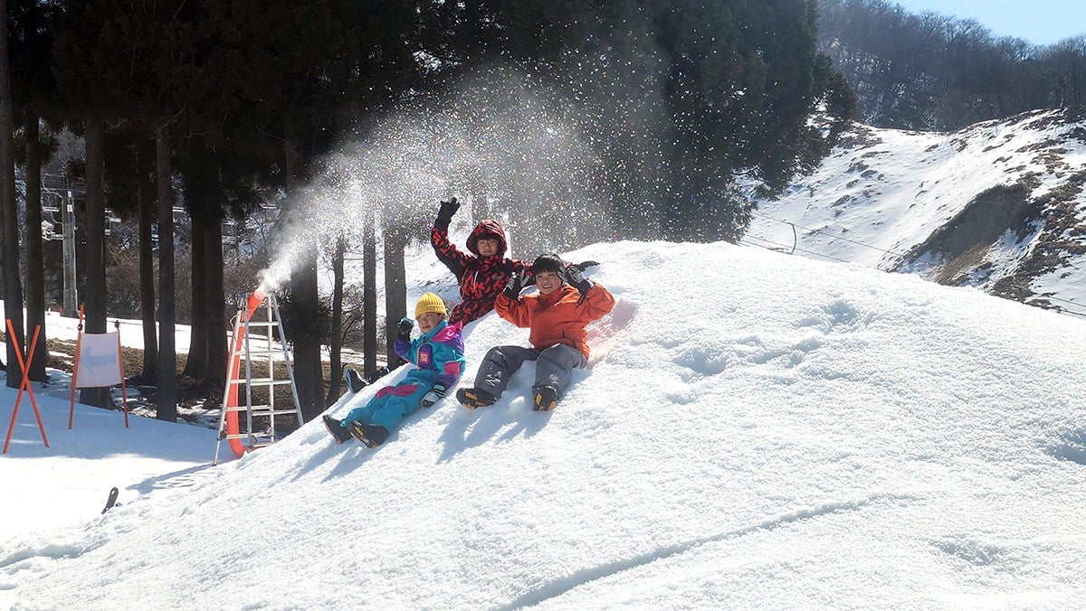設置場所は、初級者〜上級者まで誰もが利用する「ファミリーゲレンデ」と、日本最速の高速リフトが架かるグランスノー奥伊吹のメインコース「バラエティーゲレンデ」の2コースで、人工造雪機の雪のみで合計「1300mの滑走」が可能となります。