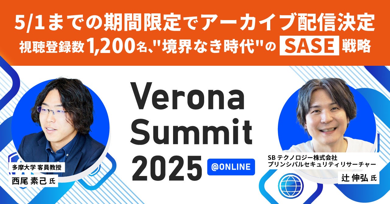 株式会社網屋(東京都中央区 / 東証グロース:4258 / 以下、網屋)が、次世代ネットワークセキュリティをテーマに2025年4月18日(金)に開催したオンラインイベント、「Verona Summit 2025」のアーカイブ配信が決定しました。