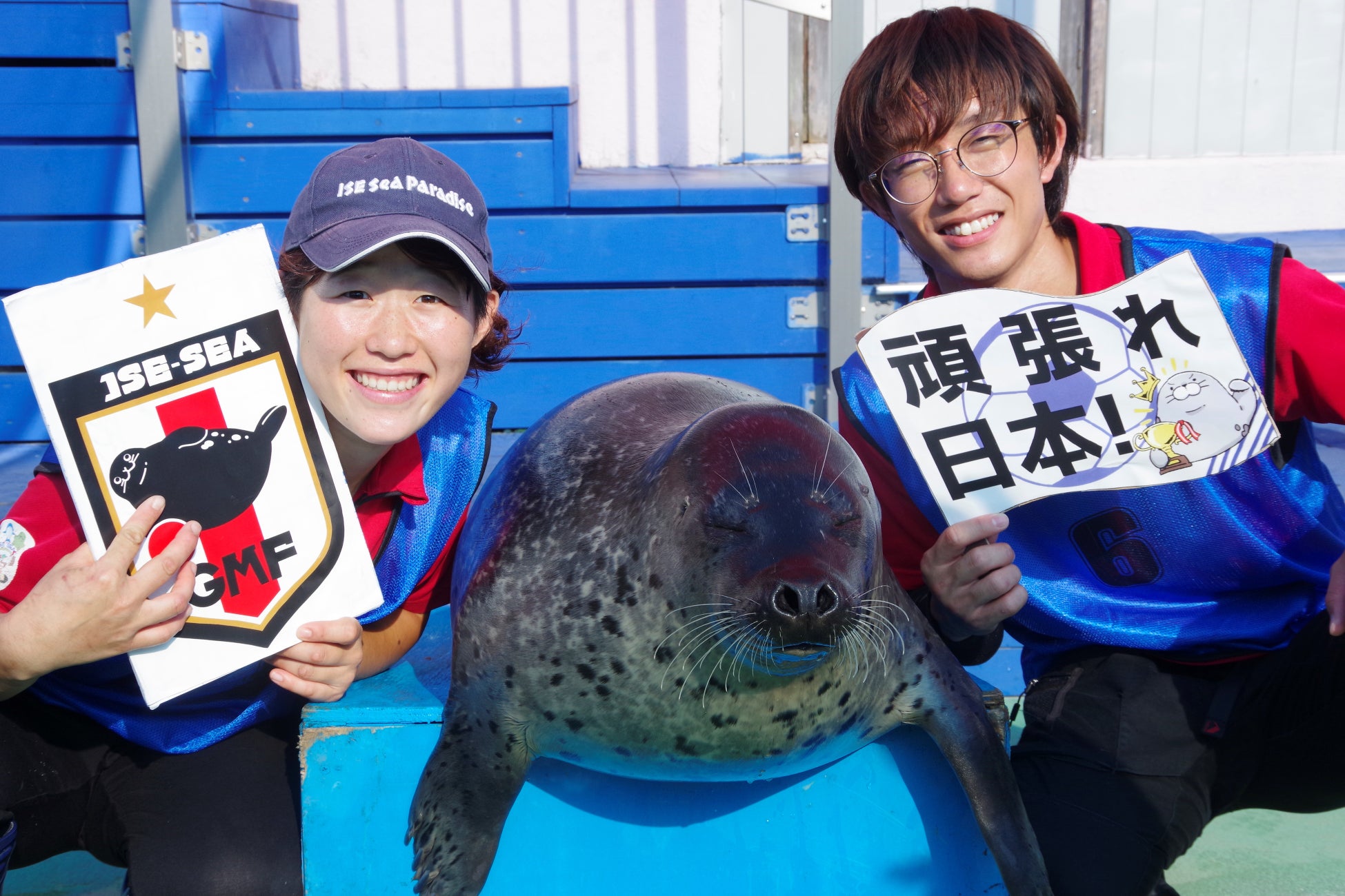 また、イベント後には、ゴマフアザラシに直接タッチできるイベント「ゴマちゃんタッチ」も行なっており、伊勢シーオリジナルなでしこ応援パネルを持って記念撮影することも出来ます。