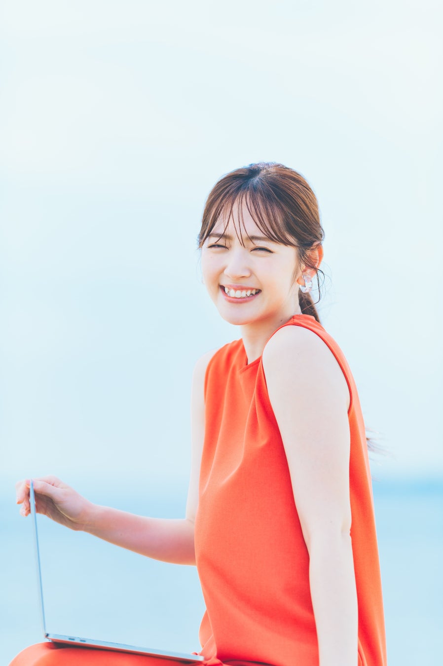 梅雨明け前で安定しない天気が続く中、屋外での撮影が心配でしたが、当日は日差しが眩しいほどの夏らしい晴天に。真夏のような暑さにも関わらず、常に元気で笑顔を絶やさない鈴木愛理さんは、様々なポーズや表情でテンポよく撮影をリードしてくださり、海辺のロケーションを活かした開放感あふれるカットが撮影できました。
