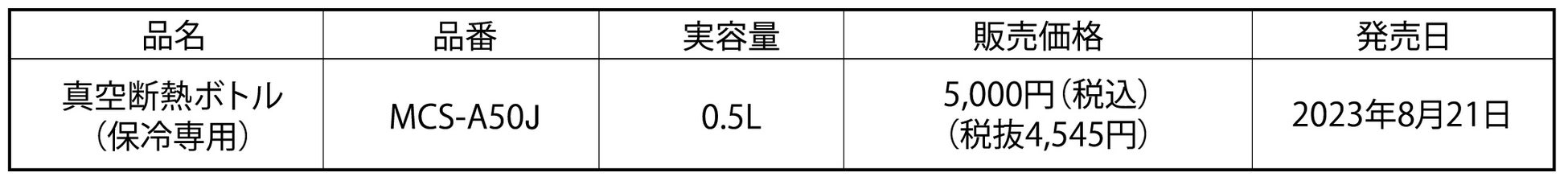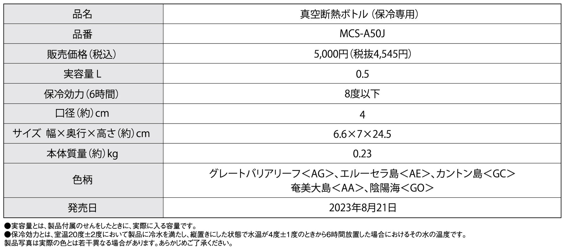 「真空断熱ボトル(保冷専用)MCS-A50J」 詳細・購入はこちら: