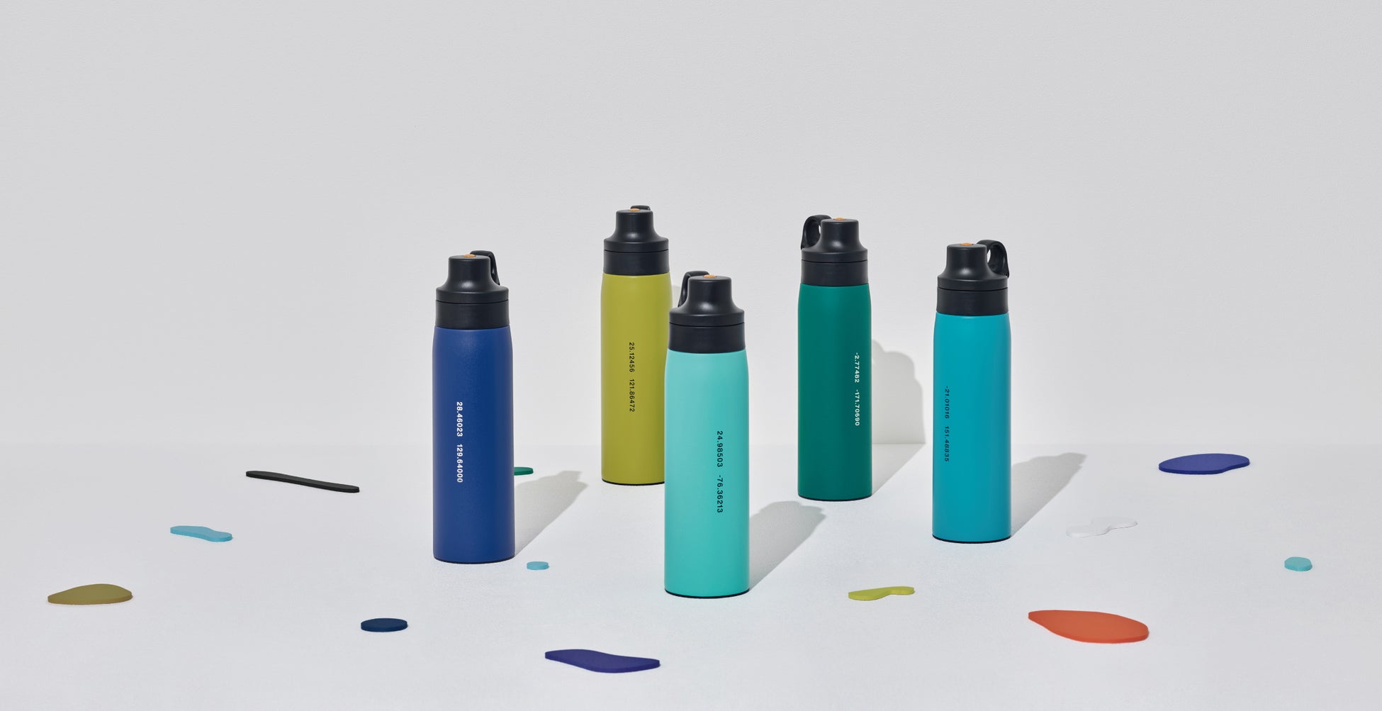 世界の海の衛星写真から選ばれた、名前はないが、理由はある色、12色。そのうちの5色をイメージした真空断熱ボトルが登場。