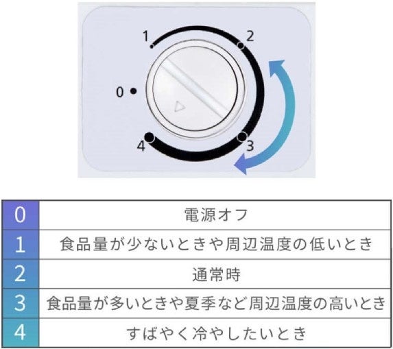 内容量に合わせて庫内の冷却温度を段階調節できます。