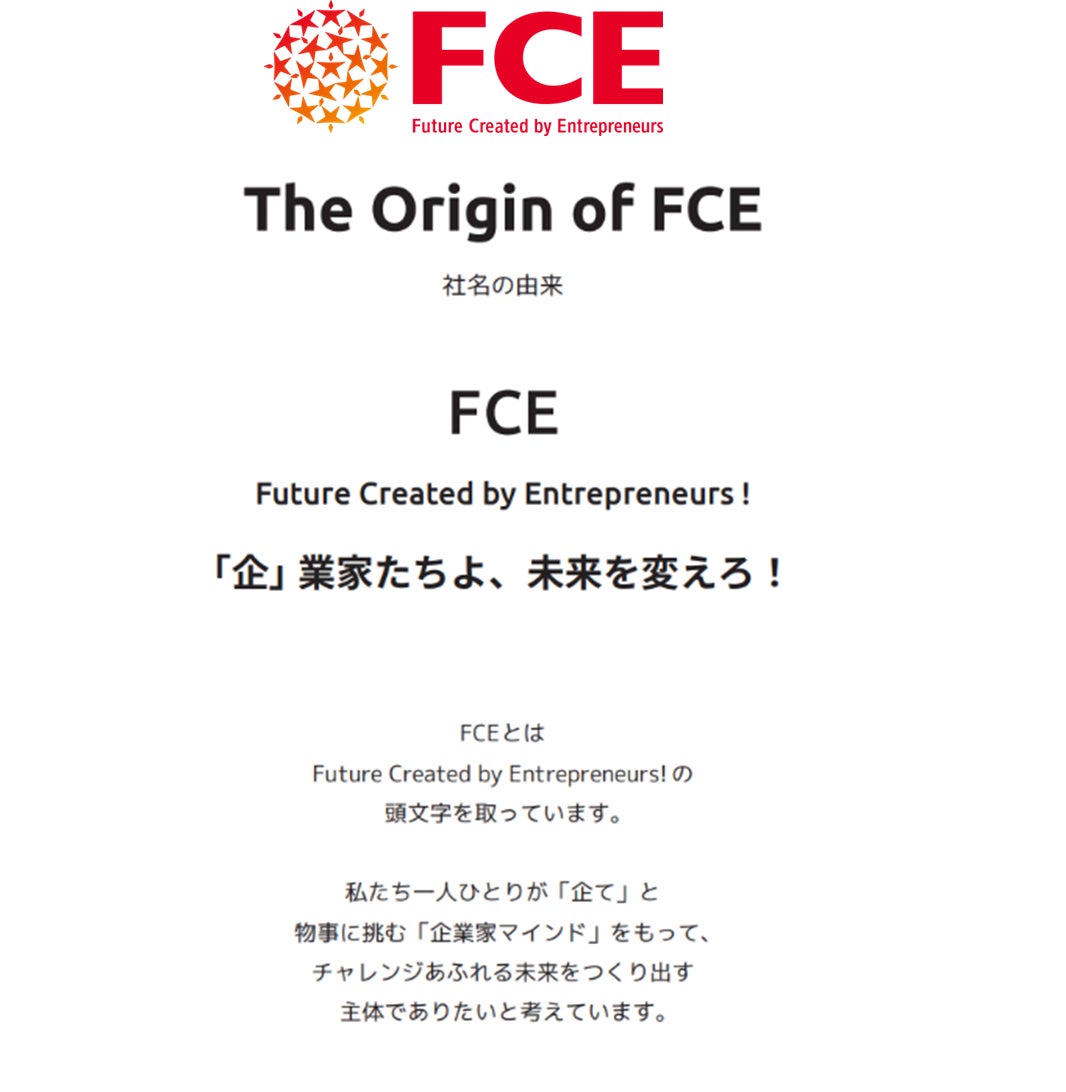 FCEとは、Future Created by Entrepreneurs!の頭文字を取っています。
