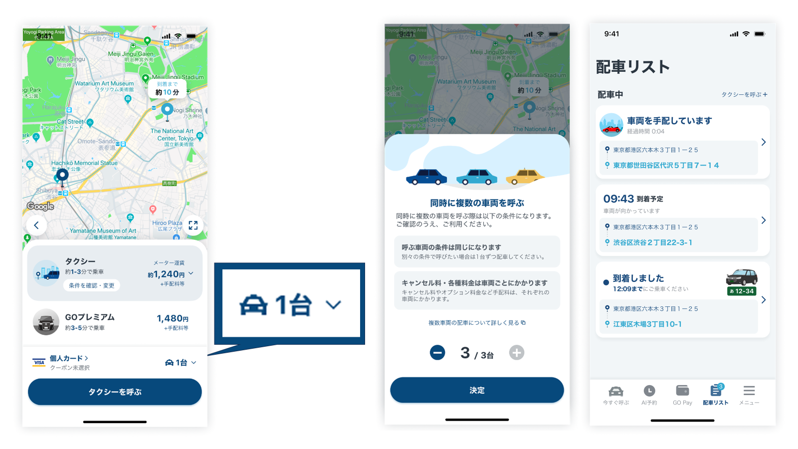 |タクシーアプリ『GO』の「複数台配車機能」概要