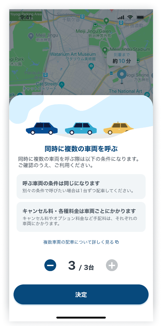 機能名 : 複数台配車機能(アプリ内表示:「同時に複数の車両を呼ぶ」)