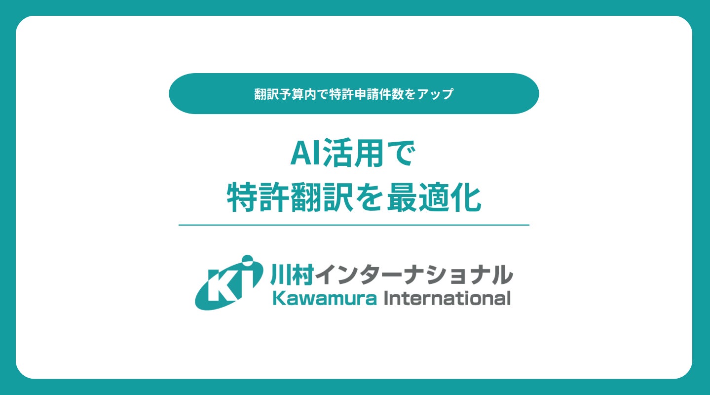 株式会社川村インターナショナル(本社:東京都新宿区、代表取締役:森⼝ 功造)は、特許翻訳のコスト削減を実現するAI活用サービスについて解説した資料「AI活用で特許翻訳を最適化」を公開いたしました。