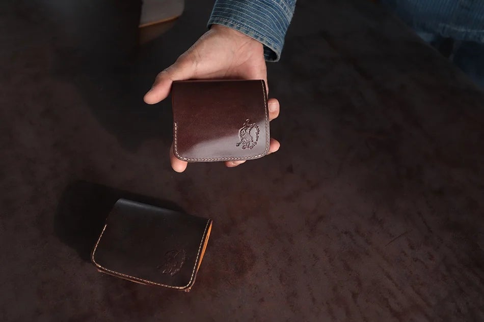 左利きのあなたへ!左利き専用のミニ財布を革職人がハンドメイド。 8月13日”左利きの日”に、革の王様「ブライドルレザー」が仲間入り。