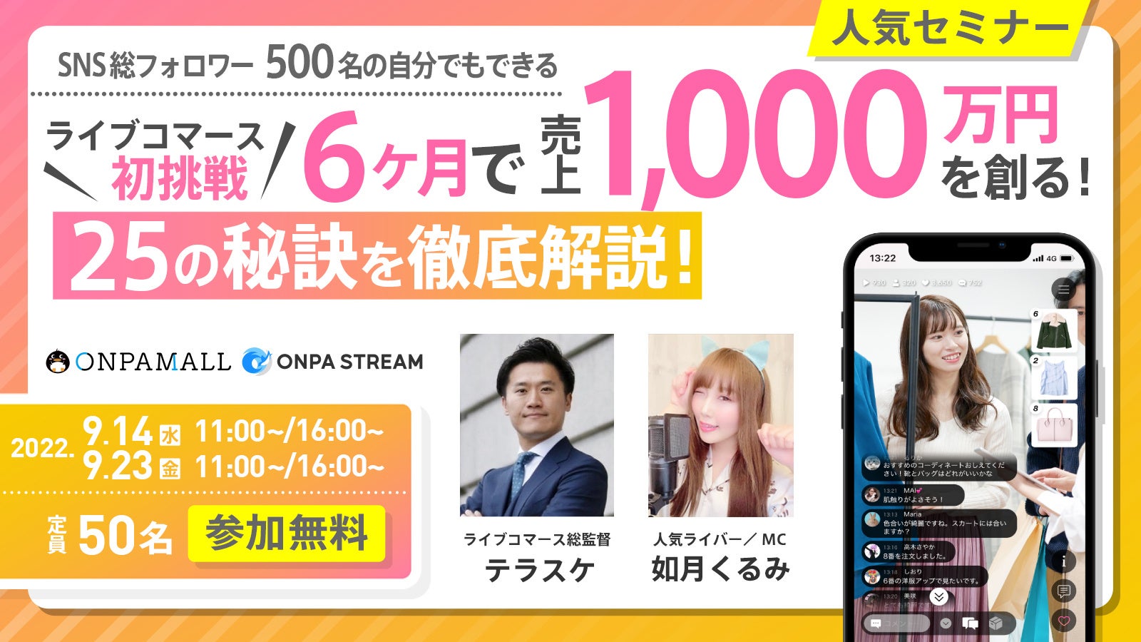 9月23日(金)の見逃し配信ではライブコマースで月商1,000万円を上げるためにはどんなステップを踏んでいくといいのか?を数値と実施内容をもとに体系立ててお話させていただいております。