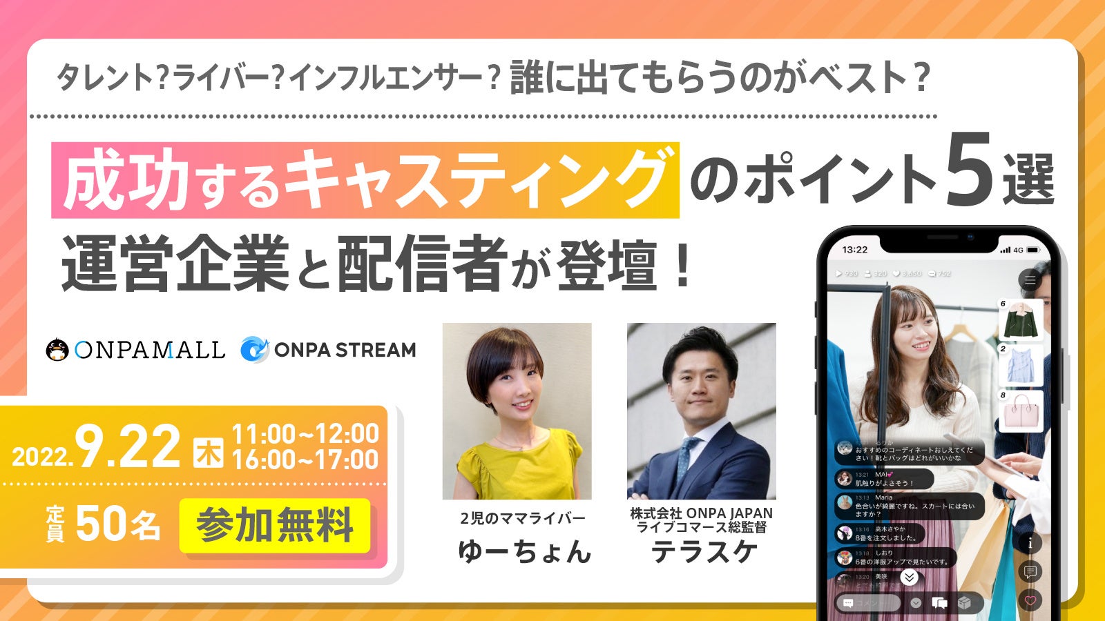 弊社のケーススタディや、キャスティングにおいて準備する内容・進行と進め方、キャスティング参考情報をお話しさせていただいておりますので、ライブコマースに興味のある皆様ぜひご参加ください。