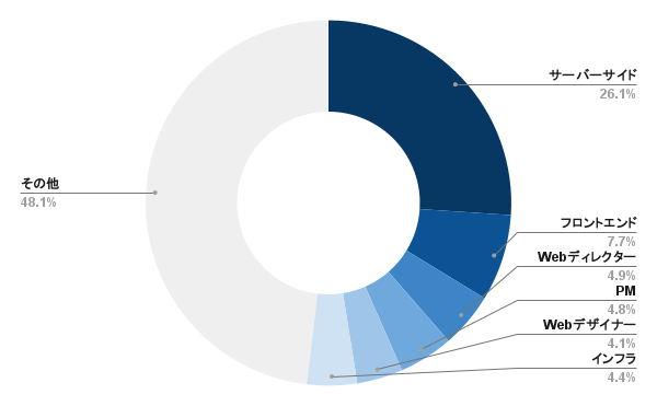 バックエンドやフロントエンドのエンジニア領域に加え、WebディレクターやWebデザイナーをはじめとするクリエイター人材も幅広くご提案が可能です。
