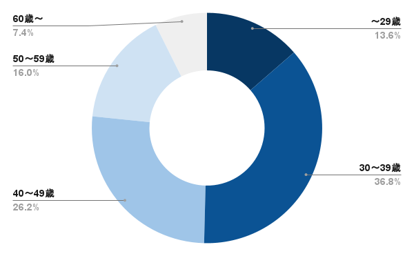 30代までの人材が約半数と若手〜ミドル層が充実しており、即戦力としてご活躍いただける経験者人材も幅広くご提案が可能です。