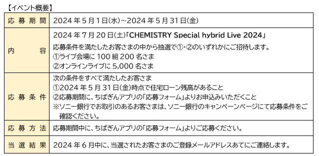 Chiba Bank × Sony Bank「CHEMISTRY Special hybrid Live 2024」の開催について~ソニー銀行株式会社との連携施策~