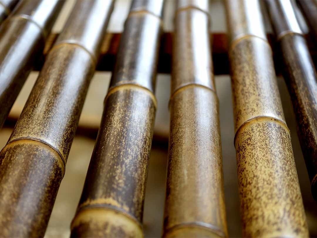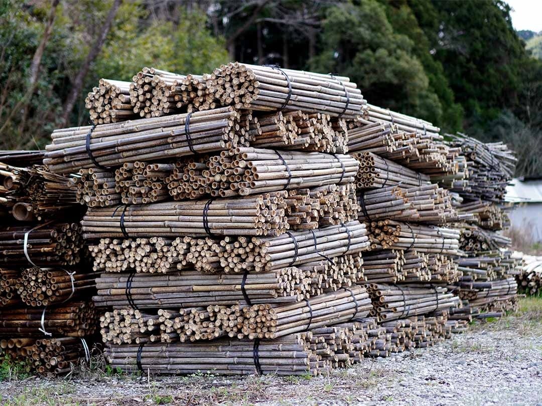 伐採から竹材への加工まで、竹職人達が竹に向き合います。伐採した竹は一本ずつ丁寧に矯め、炙り、命を吹き込むようにして竹材へと仕上げていきます。