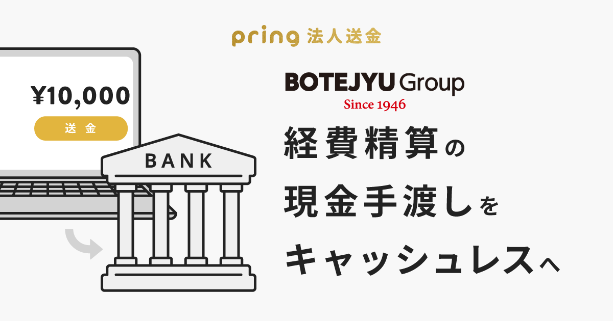 送金アプリpring(プリン)が提供する「pring法人送金サービス」が、BOTEJYU Group ホールディングス株式会社の経費精算に導入されました。