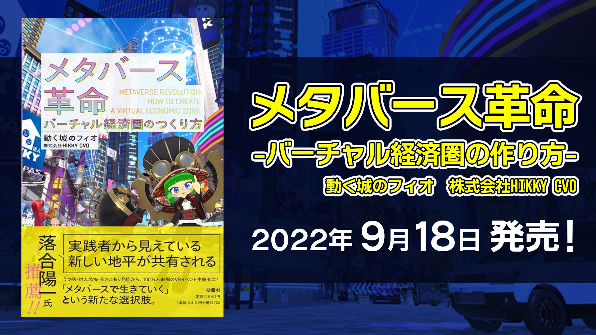 株式会社HIKKY(本社:東京都渋谷区、代表取締役:舟越靖)は、弊社CVO(Chief Virtual Officer)「動く城のフィオ」著の『メタバース革命 バーチャル経済圏のつくり方』を、扶桑社から2022年9月18日(日)より発売することをお知らせいたします。