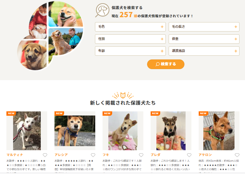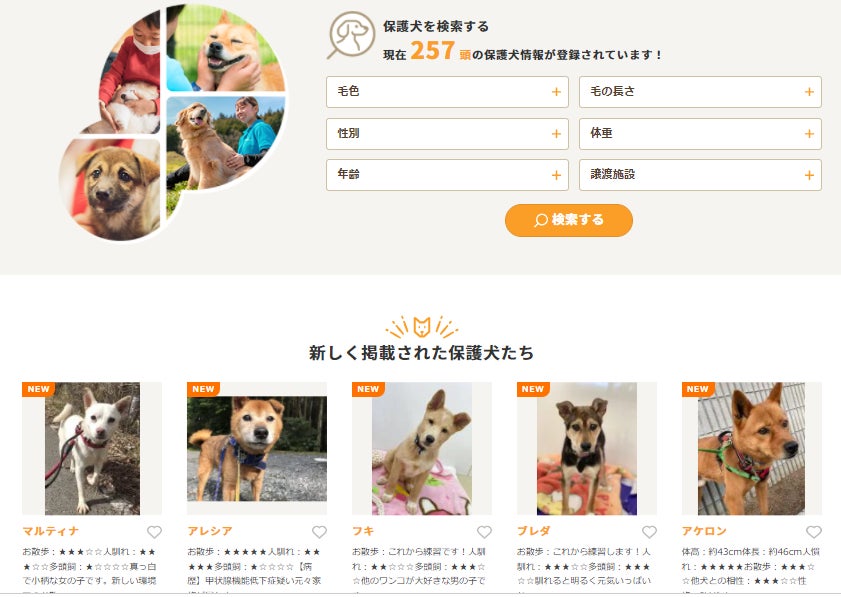 - 「保護犬の里親募集サイト」をリニューアル!検索が便利に。
