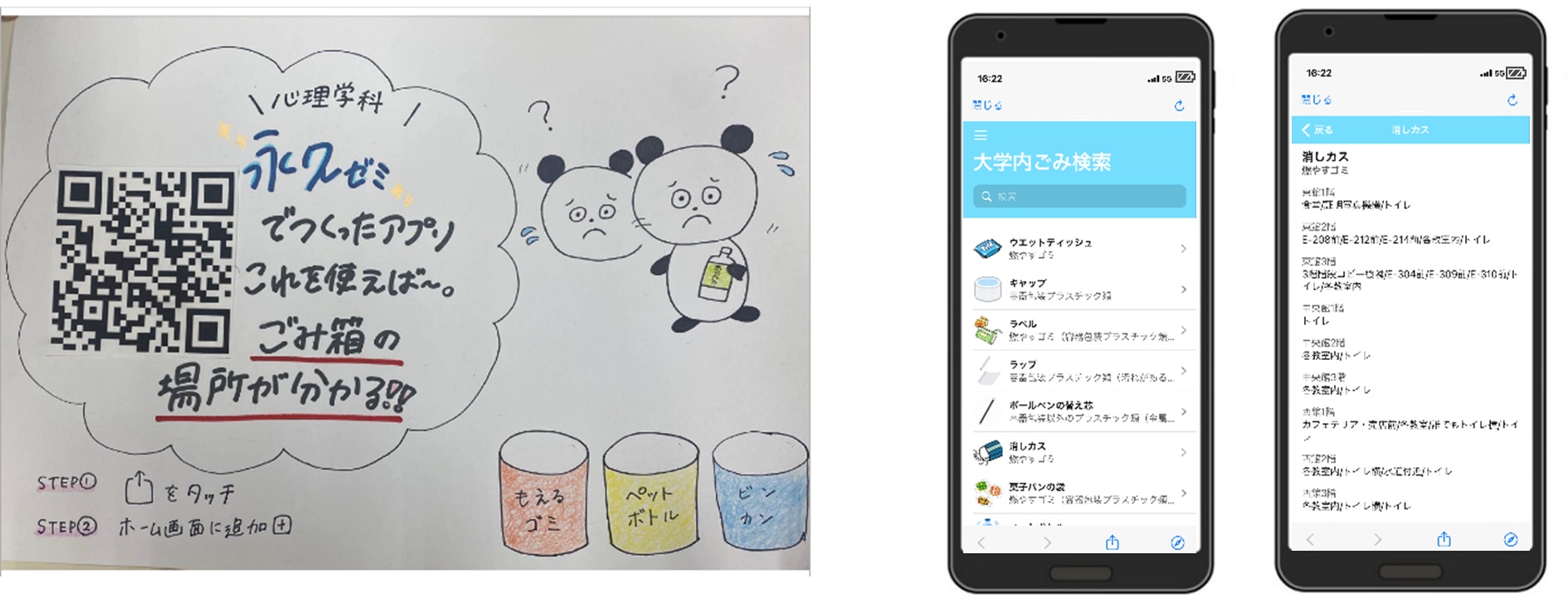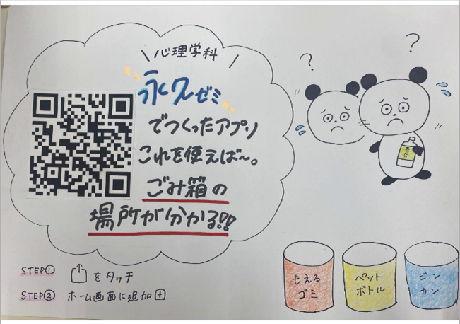 人間学部心理学科永久教授「社会的課題を心理学とアプリで解決」第一弾研究 “ゴミ箱難民救済アプリ”「ゴミる」を学内で試験的活用
