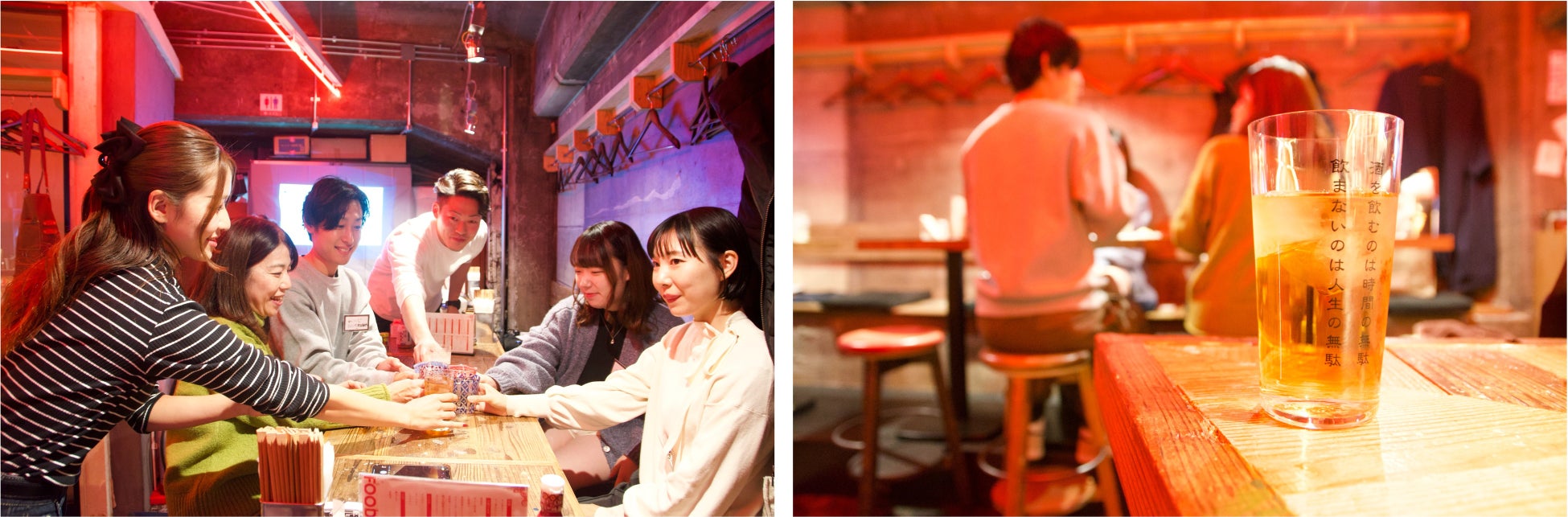 「はじめての人でも働きやすい」を追求した「THE 赤提灯」は、お客様へ提供する体験も「はじめて」をコンセプトにしています。「THE 赤提灯」は、若者層の中でも特に「20歳」へアプローチ。20歳の身分証明書を提示すると体験できる「はじめての乾杯体験」を通じて、若者に「本当に美味しいお酒」を知ってもらえるお店です。