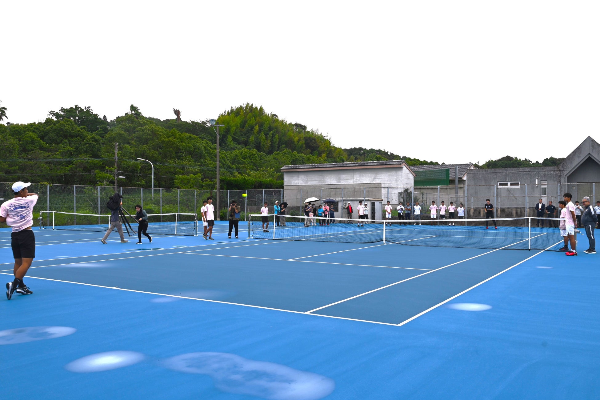 このような中、当社は、スポーツ振興を通じた宮崎県の活性化を目指し、国民スポーツ大会上位進出の鍵となるジュニア界の底上げによる宮崎県のテニス競技全体の競技力向上を支援するため、宮崎県と協議を重ね、宮崎国スポに向けたテニス競技の強化指定校である県立佐土原高校のテニスコート改修に対して地方創生応援税制(企業版ふるさと納税)を活用して寄付を実施しました。本日、このテニスコート改修事業完成の日に完成式典にお招きいただき、宮崎県より感謝状を贈呈されましたので、ご報告いたします。