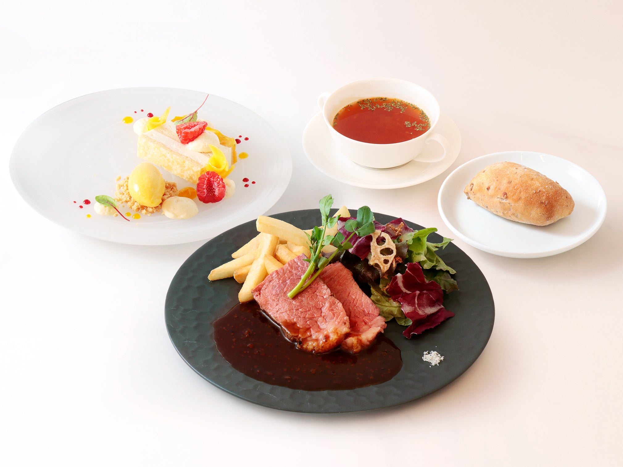 パンと季節のスープ、さらにデザートが付いた、お食事もデザートもどちらも楽しめるセットメニュー。
