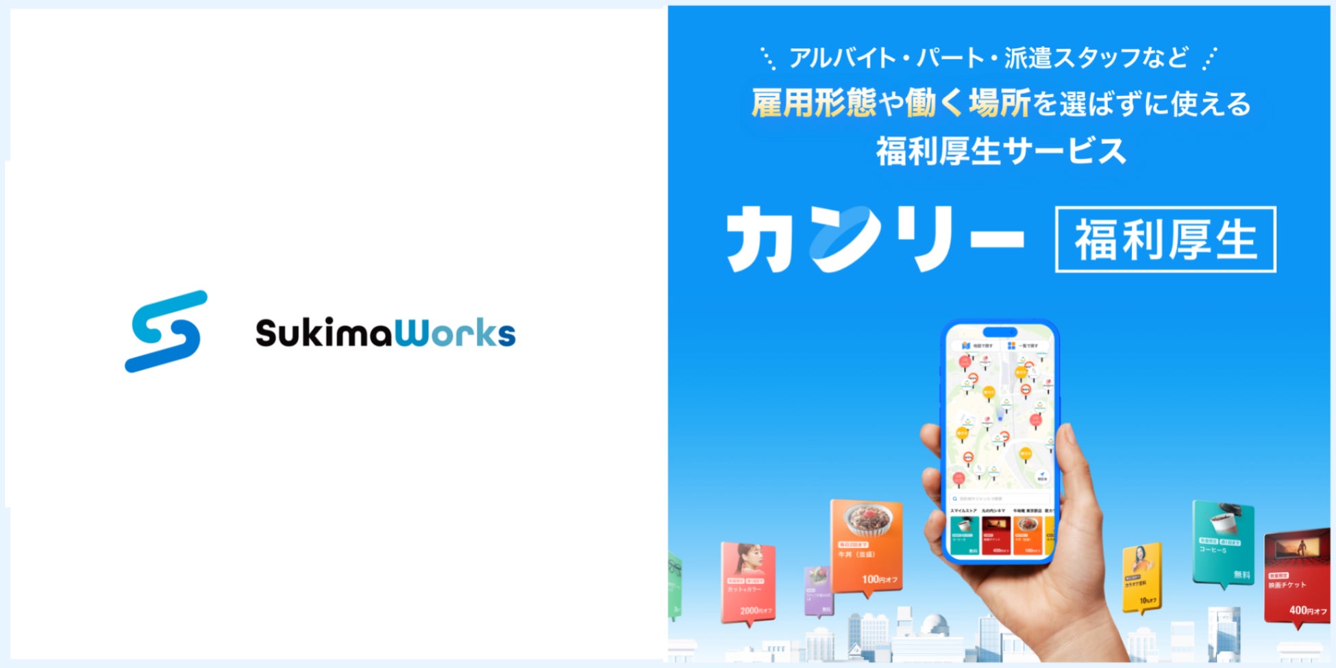この度、単発スキマバイト「スキマワークス」を展開するスキマワークス株式会社に、株式会社カンリーが提供する毎日使いたくなる福利厚生サービス「カンリー福利厚生(フクリー)」の導入が決定いたしましたのでお知らせいたします。