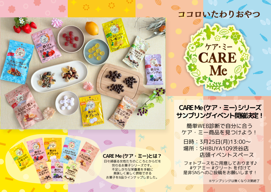 日々頑張る女性に向けた、いたわりのお菓子「CARE Me (ケア・ミー)」シリーズのPRイベントをSHIBUYA109渋谷店 店頭イベントスペースにて2024年3月25日(月)開催!