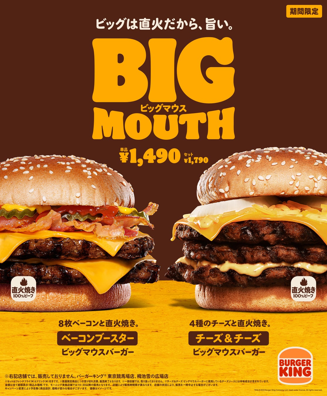まだバーガーキング® をご体験いただいたことがない方も、「ビッグマウス」ファンの皆様も、直火焼きだから旨い「ビッグマウス」シリーズをぜひこの機会にお試しいただき、2つの本格バーガーのおいしさをお楽しみください。