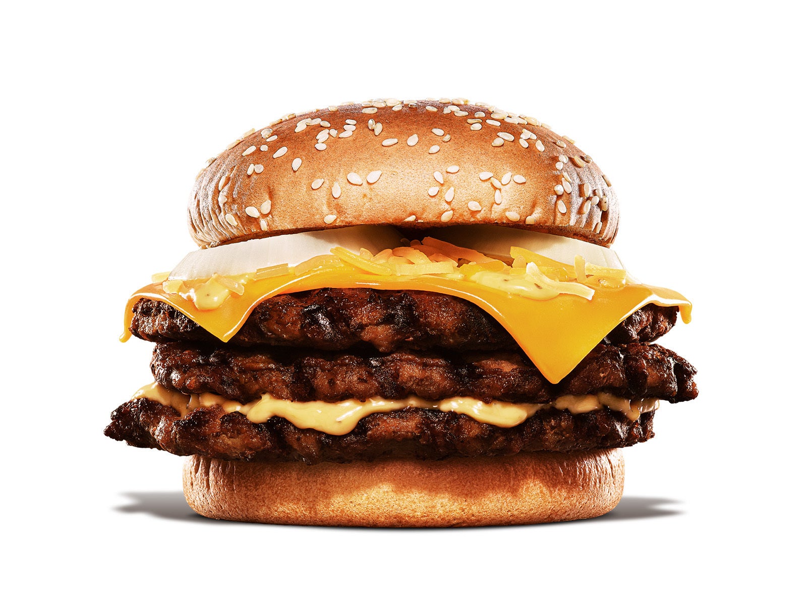 バーガーキング®の“ビッグマウス”は直火焼きだから旨い!炎で焼いた香ばしい100%ビーフから肉の旨味が溢れ出す ダブルビーフにベーコン8枚「ベーコンブースター」ビーフ3枚に贅沢チーズ「チーズ&チーズ」