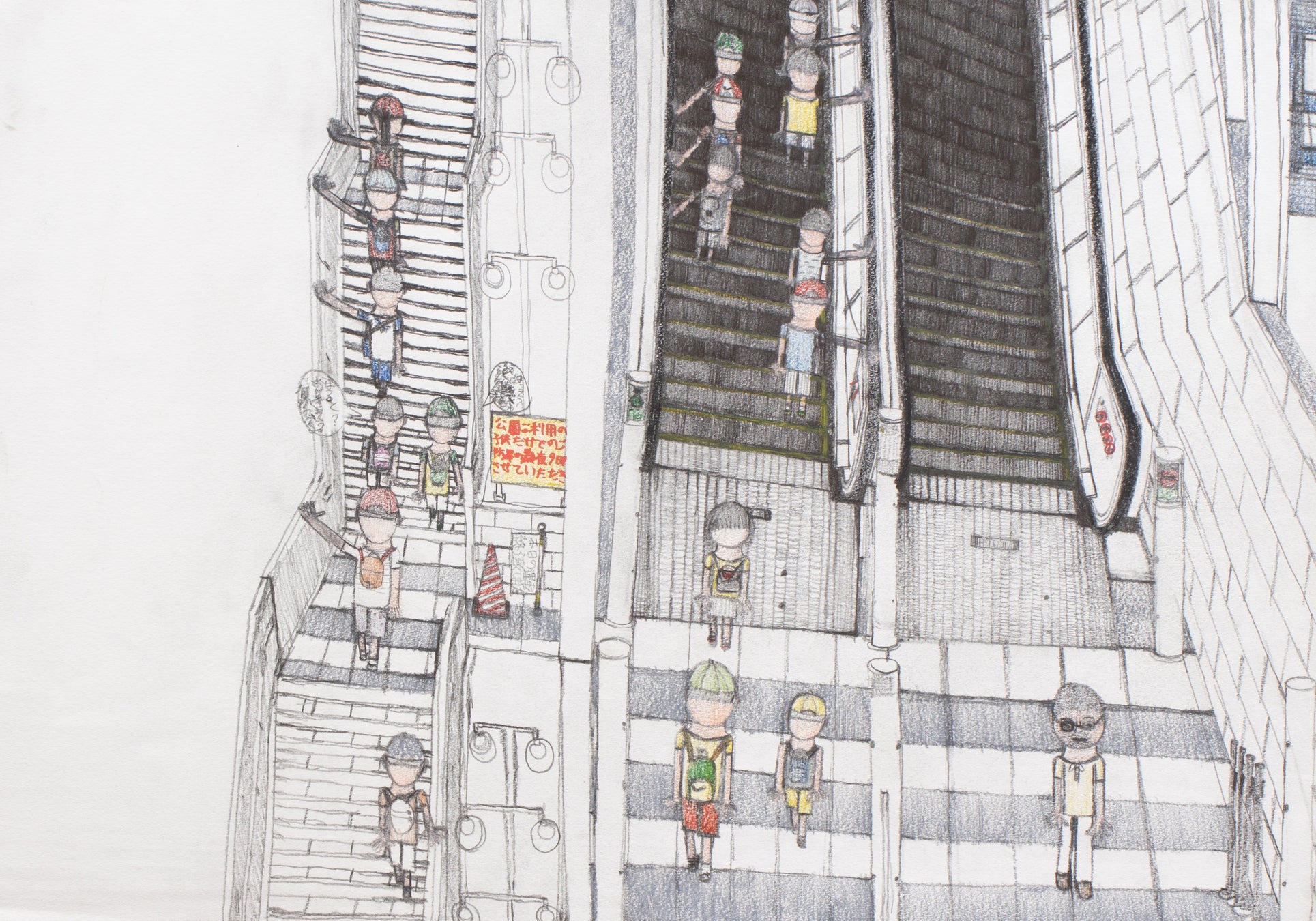 宜野湾市在住。彼の主題は、学生時代から花火とエスカレーター。自分の想像によってつくり出したもので、実在するものはほとんどない。自分の考えた架空の設定を、人に説明するのも楽しみのひとつ。主に鉛筆で描き、ペンや絵の具を準備しても手を出さない。花火の絵は白い画用紙に鉛筆で描いたが、高校生の頃、美術教師のアドバイスで今のスタイルに変わった。一見まったく違う画風にみえるが、いずれの作品も、飽くことなく幾重にも線を重ねたドローイング(線描)で、そのことが作品の強度を生み出している。現在も、わかたけの創作活動では、もっぱらエスカレーターを、自宅では花火とエスカレーターを描きつづけている。その作品数は膨大な数になる。