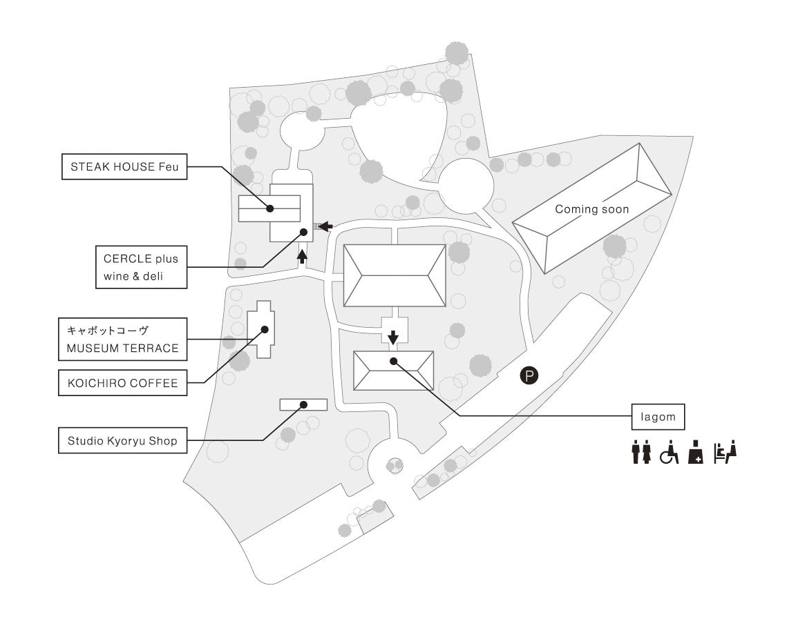 新たにオープンする4店舗は、ブレックファースト&カフェ「キャボットコーヴ MUSEUM TERRACE」、カフェ「KOICHIRO COFFEE(コイチローコーヒー)」、レストラン「STEAK HOUSE Feu(ステーキハウス フゥ)」、ガーデニングショップ「Studio Kyoryu Shop(スタジオ キョウリュウ ショップ)」です。
