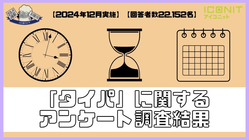 株式会社メディアシークが提供する累計3,600万DL超スマートフォンアプリ「QR/バーコードリーダー・アイコニット」内で、アプリユーザーを対象に毎日実施しているアンケート「アイコニット・リサーチ」において、「タイパ」に関するアンケートを22,152名に対して2024年12月5日に実施いたしました。