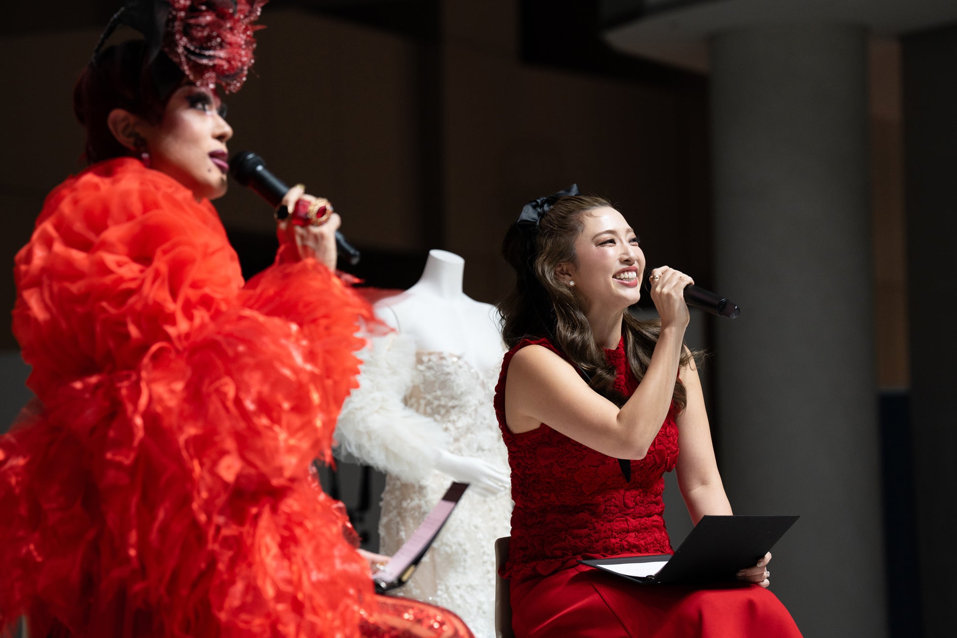さらに、MCにドラァグクイーンのドリアン・ロロブリジーダ氏をお迎えし、ゲストにコンテンツクリエイター・DJとして活躍し、自身の結婚式でもGalia Lahavを着用された植野 有砂氏をお招きしてトークショーを開催。「美しさの多様性と、私らしい生き方」をテーマに飾らないトークが展開され、来場の皆様からも多くの共感と拍手が寄せられました。