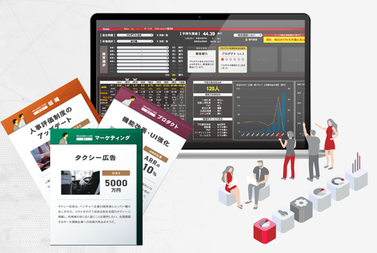 資金ショートの危機、成長期の組織の歪みなど、リアルな経営課題と難しい意思決定が連続的に起こります。プレイヤーは、自身で意思決定を重ねることで、半強制的に経営目線まで視座・視野を広げることができます。