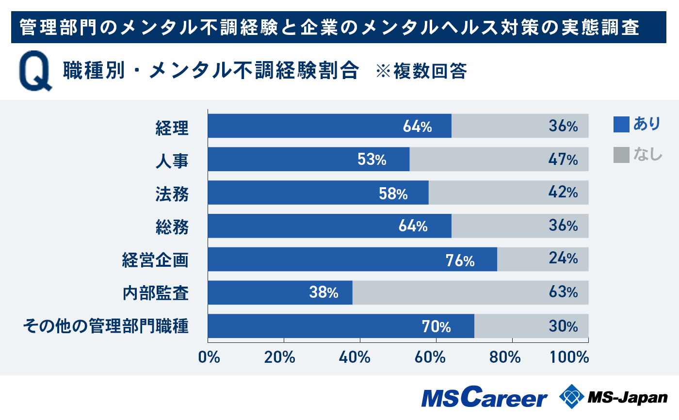 そこで、管理部門と士業の転職やキャリアを支援するMS-Japanでは、「管理部門のメンタル不調経験と企業のメンタルヘルス対策の実態」に関する調査を実施しました。