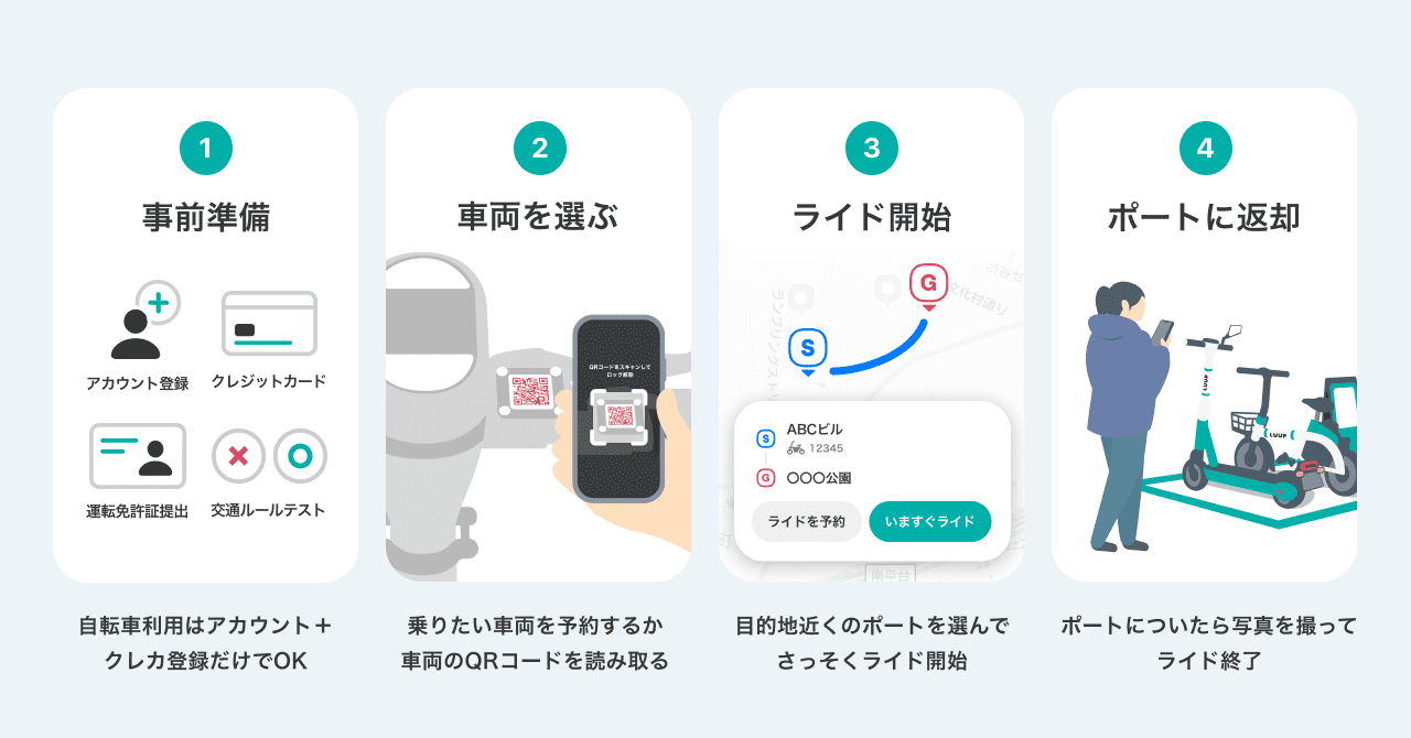 ステップ1:LUUPにライドする
