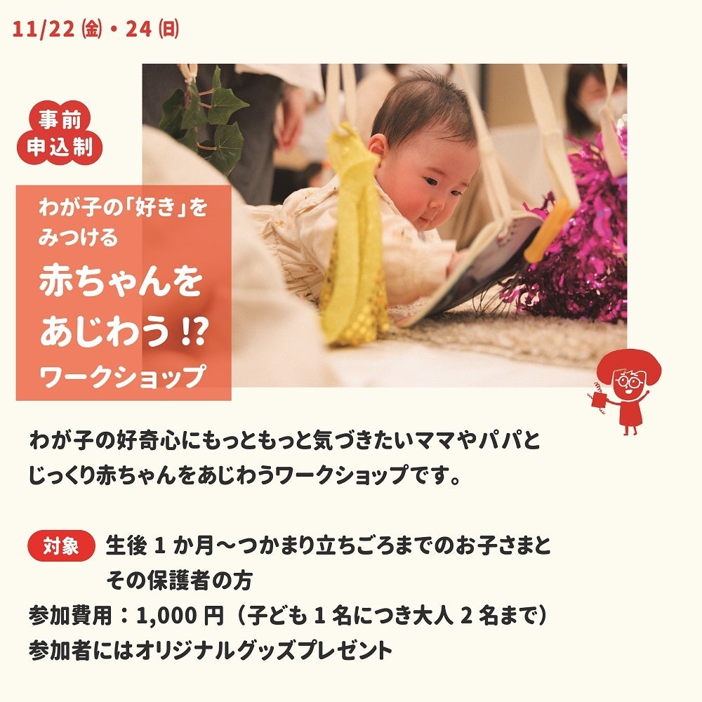 ※赤ちゃんをあじわうワークショップは参加費1000円(オリジナルグッズつき)