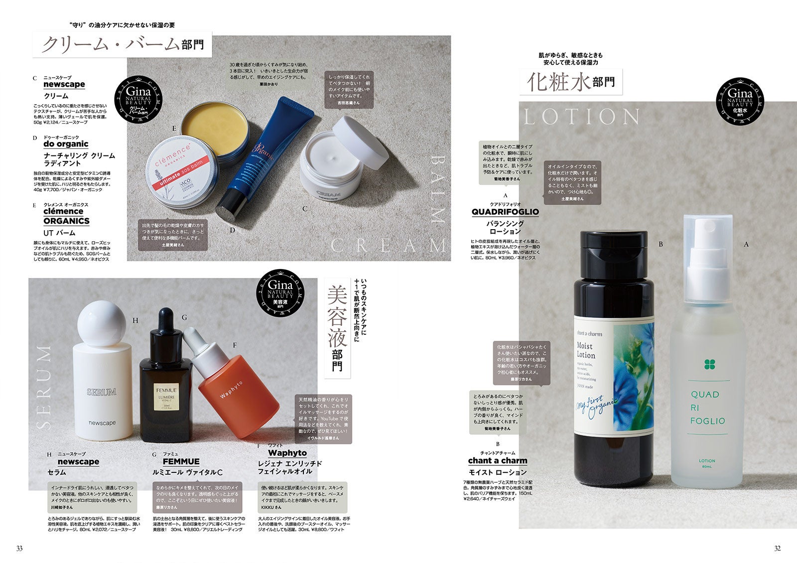 そして人気企画の「Gina認定! 名品アワード2023」では、美容賢者たちが実際に使って「これは良い!」とオススメした名品を厳選し、17の部門ごとに発表!