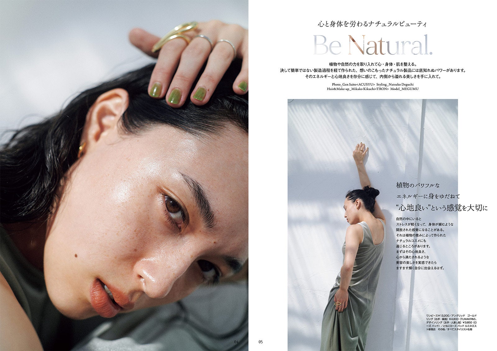 特集は、自分に合った基本ケアを見直す「ベーシックスキンケア」や、肌悩みや生理とうまく付き合うための「救世主美容法」、人気ヘア&メイクアップアーティストの菊地美香子さんが提案する「ハンサムメイク3選」などを掲載。