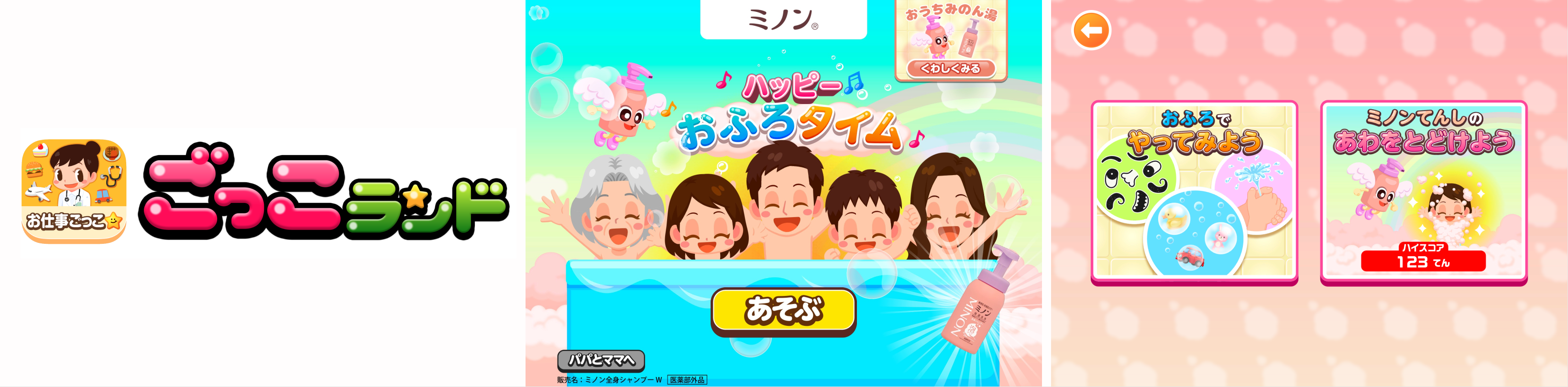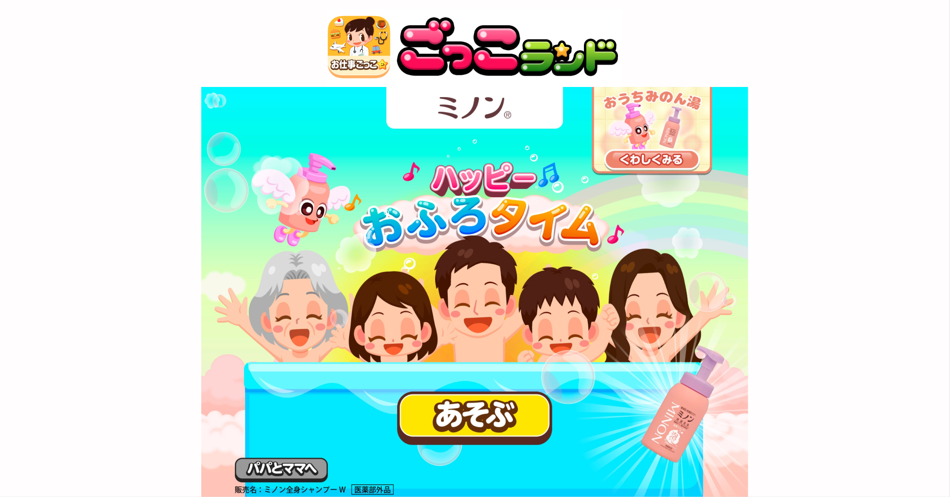 子ども向け社会体験アプリ『ごっこランド』に第一三共ヘルスケア 敏感肌向けスキンケア「ミノン®」の新ゲーム「ミノンのハッピーおふろタイム」が登場!