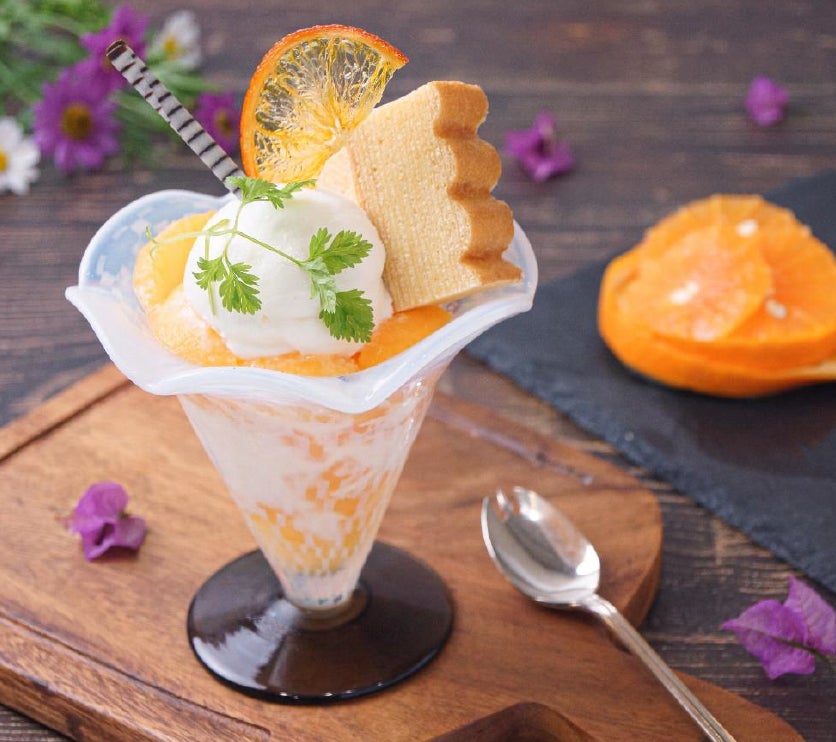 この度、お届けする春スイーツでは、最旬を迎えた和歌山県産みかん「清見オレンジ」となめらかな口当たりと濃厚な甘さが特徴的な「Premiumミルクジェラート」をふんだんに使用した特製パフェをご用意。旬の終わりとともに販売も終了となりますので、お早めにお買い求めください。