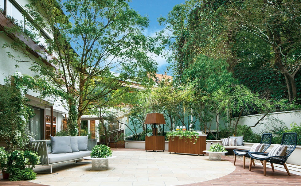 料亭「白雲閣」開業から74年、伝統を受け継ぎモダンに和食を提供する「茶寮リビエラの庭」では、ランチやディナー、カフェもお楽しみいただけます。アートフェア期間中は、料理家・三宅道子さん監修の“アートなお膳”を特別提供。滝の水音や鳥のさえずりをBGMに、緑豊かな都会の杜でお寛ぎいただけます。
